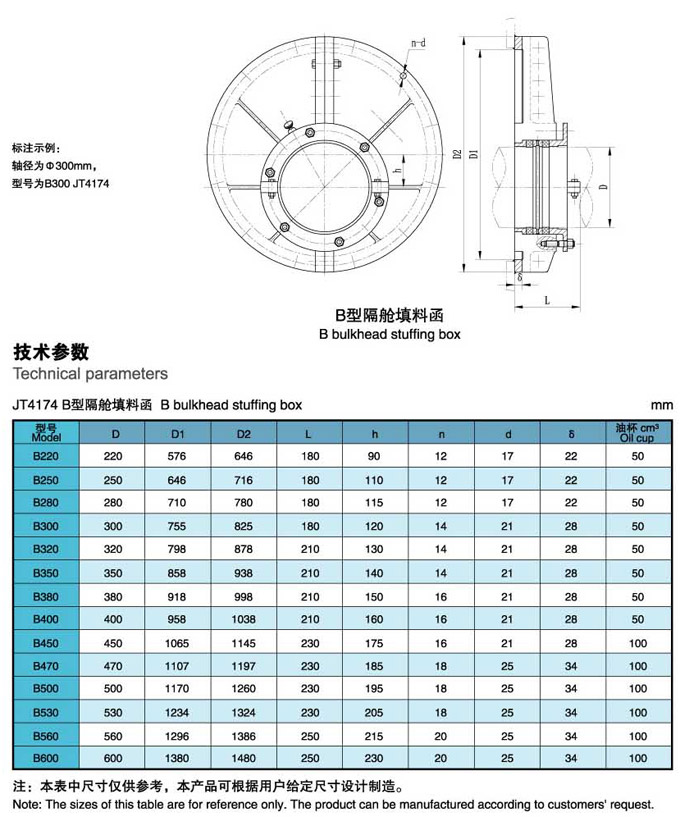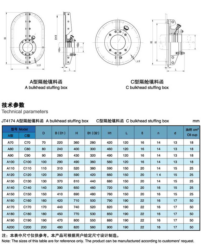 船舶隔舱空间大的船舶,建议选用A型。 船舶隔舱空间较小或设计有要求时,可选用B型、C型。 Remarks: Type A is suggested for vessels whose bulkhead space is large.