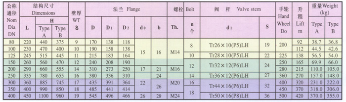 GB/T3591-94 A型、B型油轮闸阀的基本尺寸(mm)