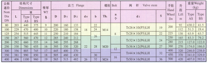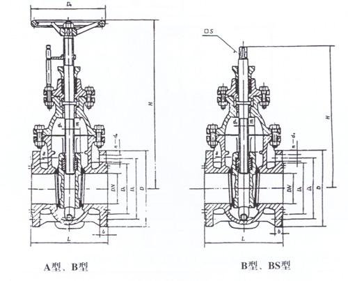 AS型、BS型油轮闸阀的基本尺寸(mm)